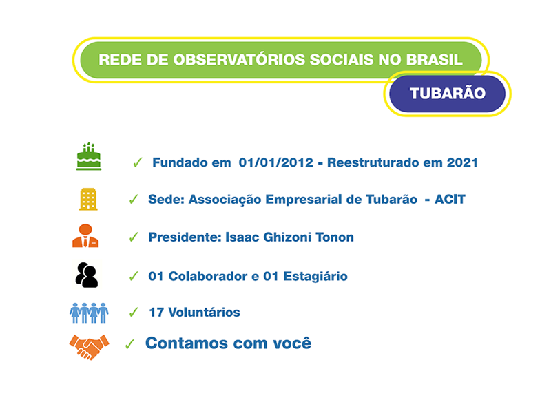 O Observatório Social de Tubarão funcionou até o mês de abril de 2018. A partir desta data as suas atividades foram interrompidas.